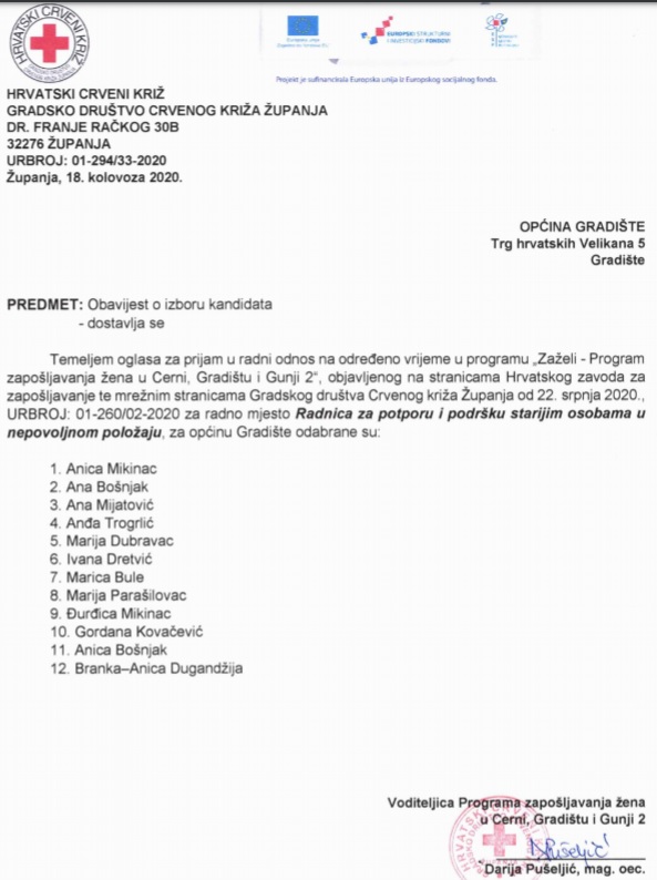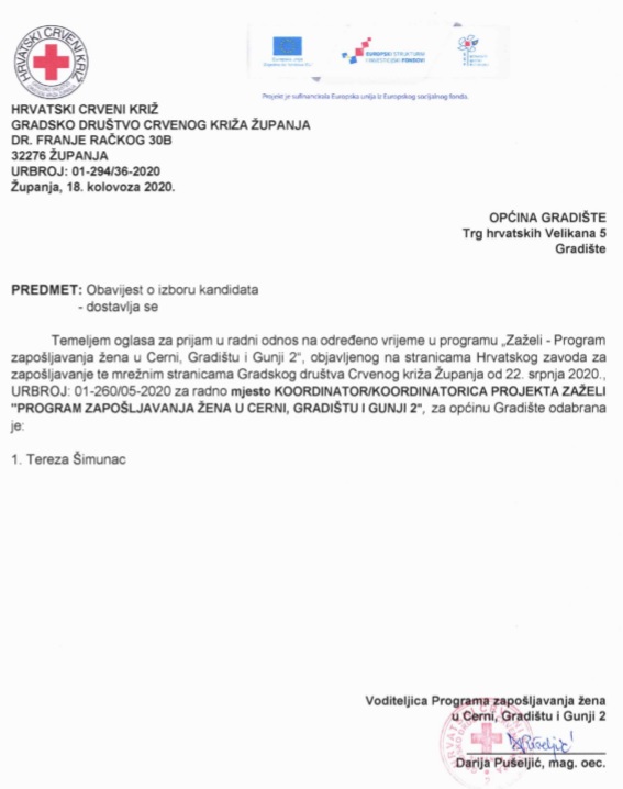 Obavijest o izboru kandidata za program “ZAŽELI”